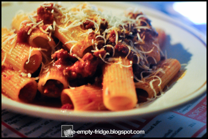 Rigatoni - Berkshire Pork Sausages, Sage, Tomato, Garlic and Chilli $27 John, Gianna's lil bro got this pasta, one of the favourites I might add. Big rigatoni, chunks of pork sausage and a rich tomato sauce with sage - this is one hearty pasta. What I love is that it just screams out EAT ME! If you happen to be very hungry I would advise that this is what you order. Even if you aren't order it anyway. It is absolutely delectable.